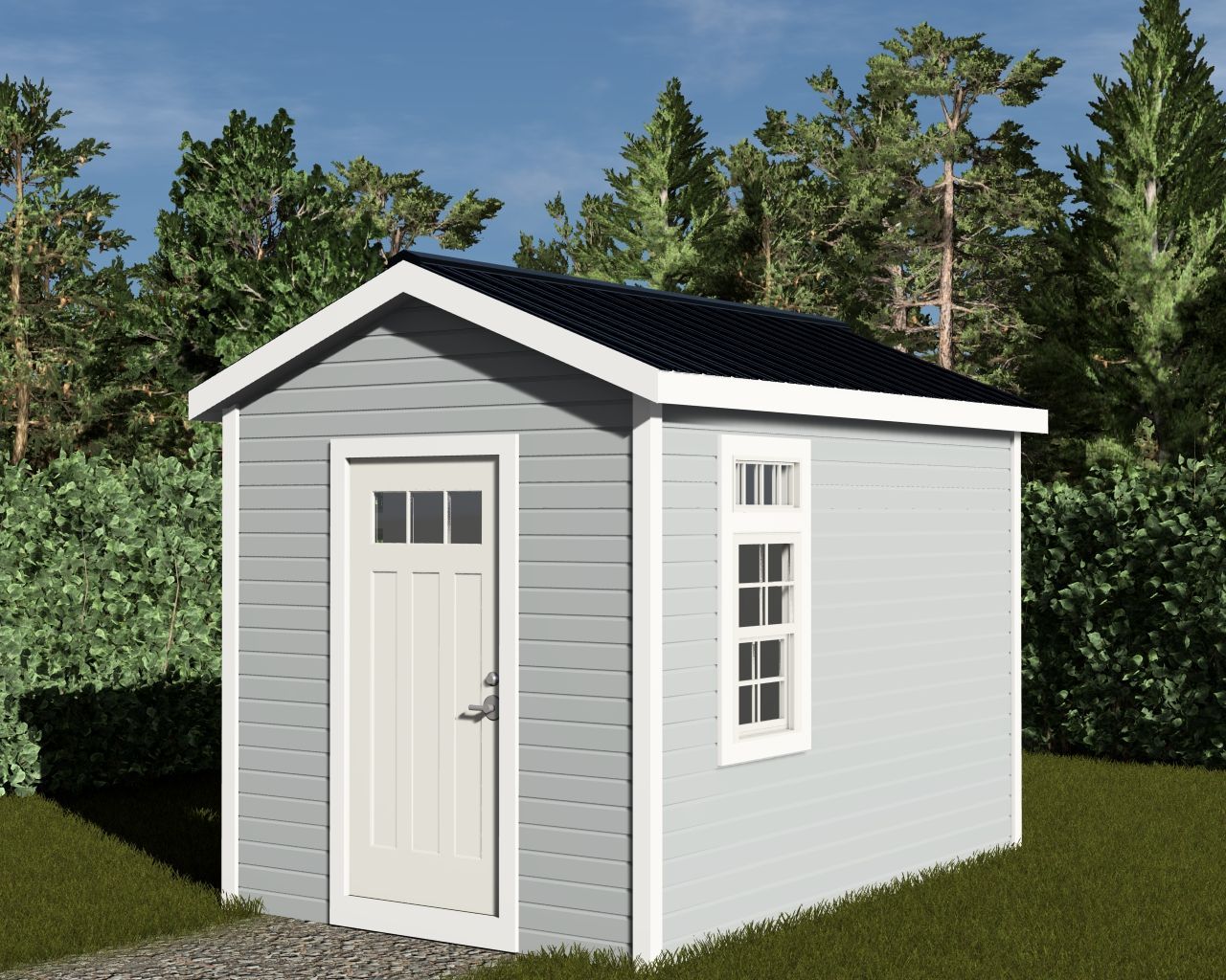This classic 8' wide by 12' deep shed offers 96 sqft of versatile space, perfect for larger storage needs, hobby setups, or a compact workshop. It features a full-height 6'8" single door and includes two windows for natural light. Choose between low-maintenance vinyl siding or upgrade to durable board-and-batten designer metal siding. With timeless style and everyday functionality, it's a practical and attractive addition to any property.