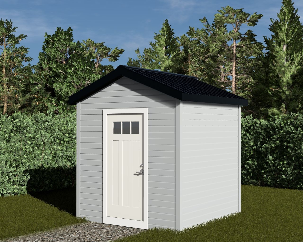 This classic 8' wide by 8' deep shed offers 64 sqft of flexible space, ideal for storage, gardening tools, or small DIY projects. It features a full-height 6'8" single door and comes included with low-maintenance vinyl siding, with the option to upgrade to durable board-and-batten designer metal siding. Timeless in style and built for everyday use, it's a smart solution for compact outdoor needs.