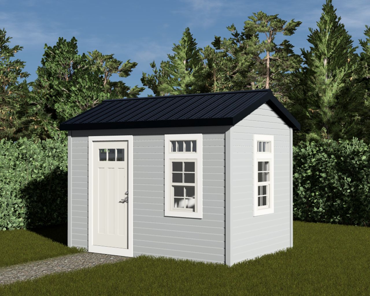 This Craftsman style 12' wide by 8' deep shed offers 96 sqft of versatile storage space with classic architectural charm. Featuring a full-height 6'8" single door and three windows that provide abundant natural light, it combines functionality with signature Craftsman detailing. Choose between low-maintenance vinyl siding or upgraded board-and-batten designer metal siding to match your style and durability preferences.