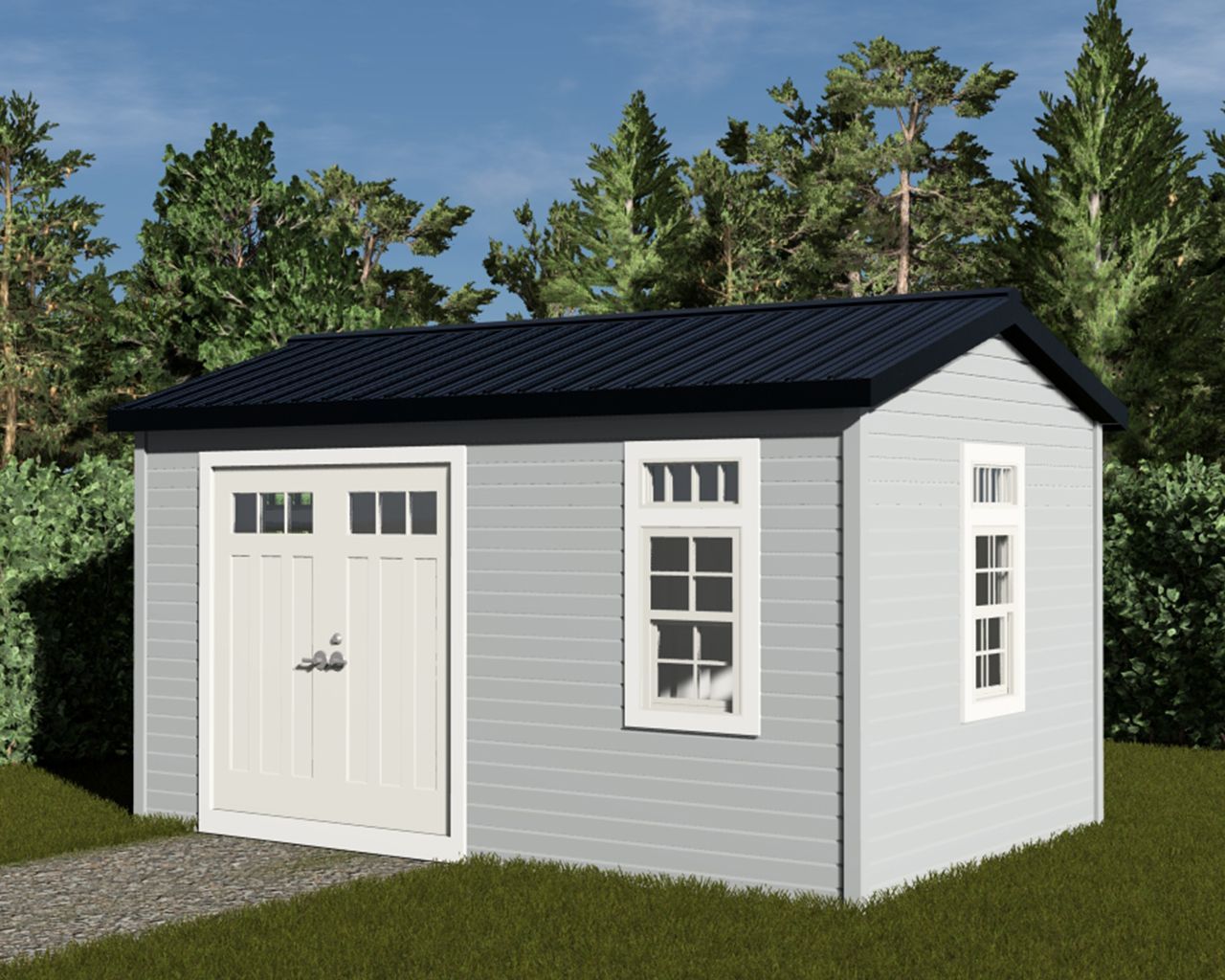 This Craftsman style 16' wide by 10' deep shed offers 160 sqft of versatile space with exceptional curb appeal. It features full-height 6'8" double doors for easy access and three windows that provide abundant natural light, all enhanced by signature Craftsman detailing. Choose between low-maintenance vinyl siding or upgraded board-and-batten designer metal siding to suit your style and durability preferences.