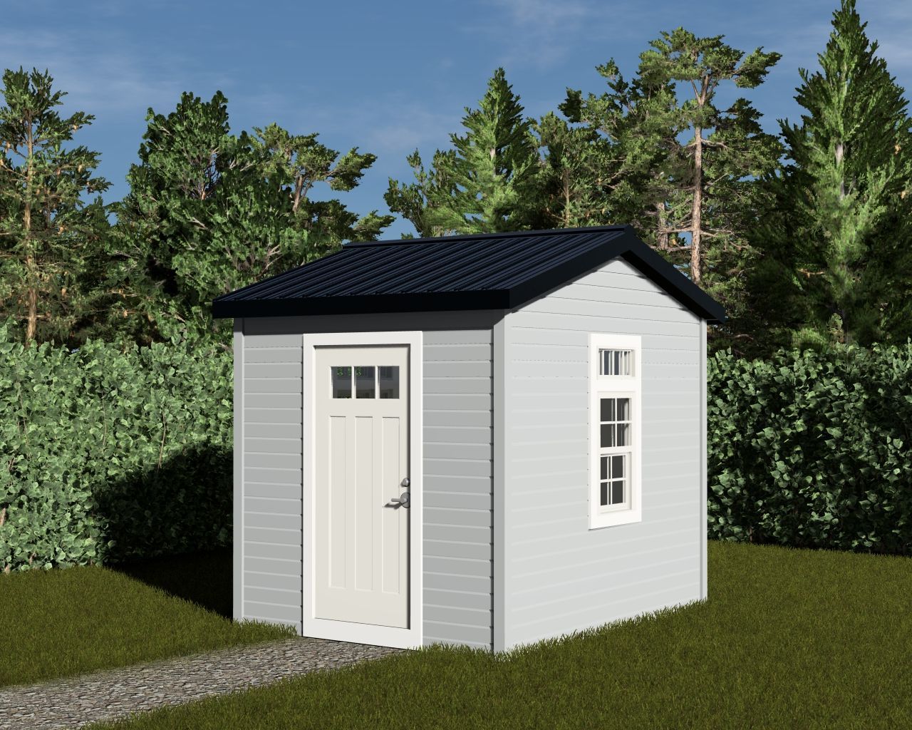 This Craftsman style 8' wide by 10' deep shed offers 80 sqft of versatile storage space with exceptional curb appeal. It features a full-height 6'8" single door, two windows that fill the interior with natural light, and signature Craftsman detailing that adds timeless architectural charm. Choose between low-maintenance vinyl siding or upgraded board-and-batten designer metal siding to perfectly match your style and durability preferences.
