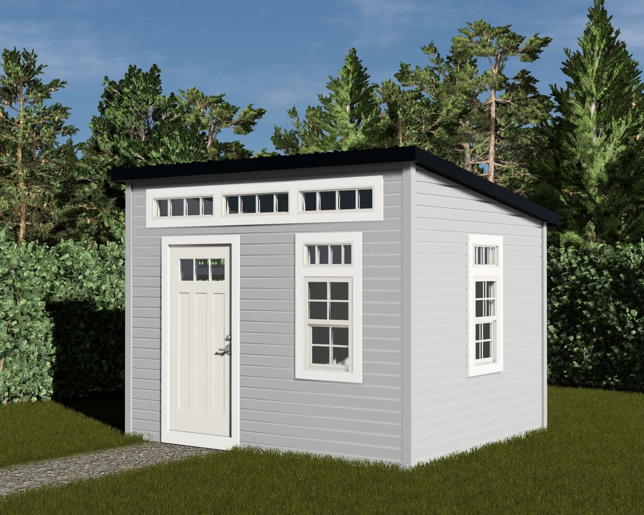 This modern 12' x 10' shed offers 120 sqft of sleek, functional storage. Featuring a full-height 6'8" single door, three large windows, and a striking triple transom, it floods the space with natural light. Choose low-maintenance vinyl or upgraded board-and-batten metal siding to match your style. Perfect for a clean, contemporary outdoor storage solution.