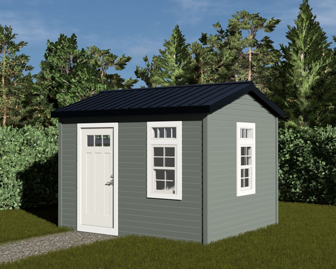 This Craftsman style 12' wide by 10' deep shed offers 120sqft of versatile storage space with timeless curb appeal. It features a full height 6'8" single door and three windows that provide ample natural light, enhanced by signature Craftsman detailing. Choose between ow maintenance vinyl siding or upgraded board-and-batten designer metal siding to suit your style and durability needs.